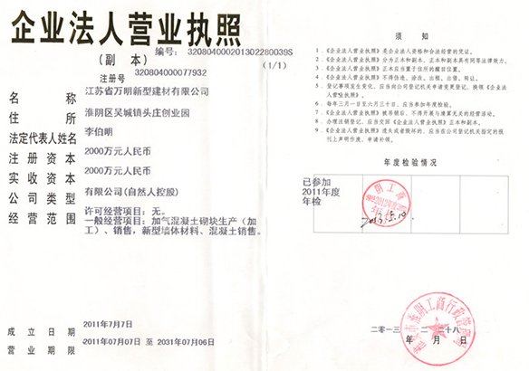 江蘇省萬明新型建材有限公司是一家多元化經(jīng)營企業(yè),專業(yè)生產(chǎn)新型墻體材料、蒸壓砂加氣砌塊、蒸壓灰加氣砌塊、混凝土砌塊銷售。本公司所生產(chǎn)的新型墻體材料、蒸壓砂加氣砌塊、蒸壓灰加氣酥塊、混凝土砌塊填補(bǔ)了江蘇省企業(yè)市場(chǎng)空白,產(chǎn)品質(zhì)量符合標(biāo)準(zhǔn),并被江蘇省墻體材料改革辦公室認(rèn)定為綠色新型墻體材料,是江蘇具活力的企業(yè)之一。